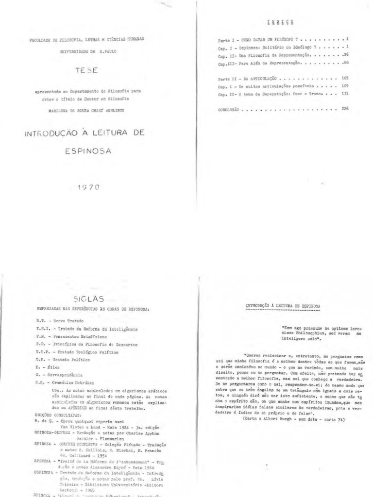 Marilena Chaui Introducao A Leitura De Espinisa Tese Doutorado Ideia Conhecimento