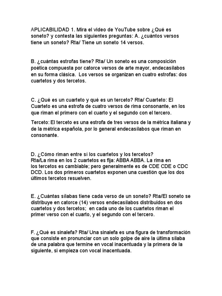 Cuanto mide - Cuanto vale - Cuanto pesa - Cuanto dura- Cuanto gana - Cuanto equivale Un soneto tiene catorce versos endecasilabos que se distribuyen en dos cuartetos y dos tercetos siguiendo el esquema. El poema consta de 32 versos distribuidos en 15 estrofas pareadas y 2 versos sueltos. Poema es toda composición poética que esté formada por versosMedir un verso es contar las sílabas que tiene.